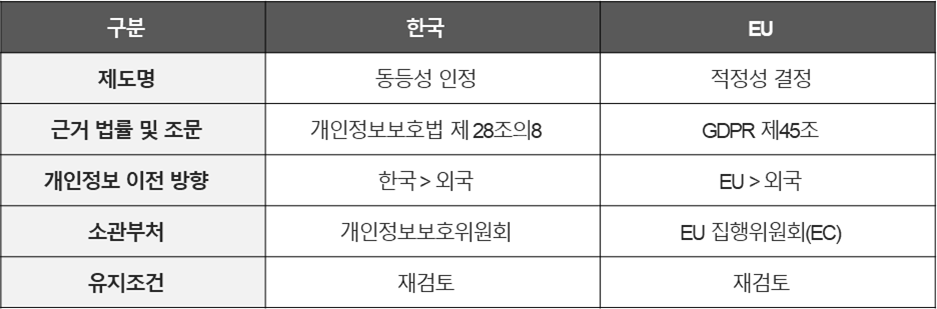 1) 한-EU (개인정보 국외이전을 위한 동등성 인정 제도)